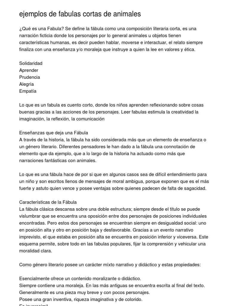 Fabulas Con Moraleja Para Ninos De 100 Fabulas